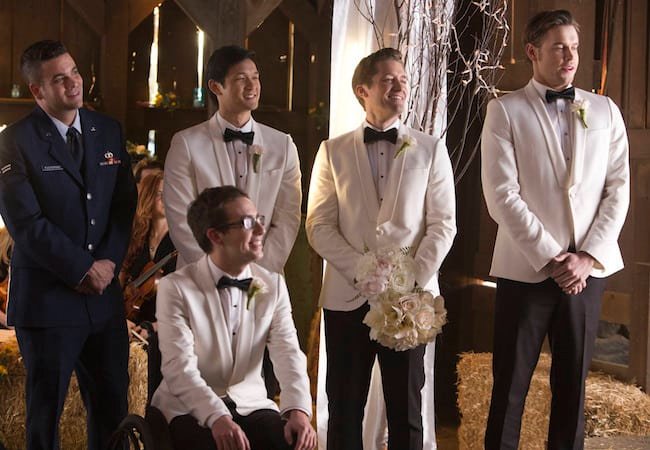 No sé si estáis siguiendo la última temporada de Glee, pero está siendo sumamente divertida. Parece que Ryan Murphy ha cogido otra vez el tono que perdió en los últimos años, y está haciendo un espectáculo que merece la pena verlo. Como sabe que es ya el fin, está gastando todos los cartuchos posibles, entre ellos una cosa que, francamente, nos encanta: La boda de Santana y Brittany. Mucho se especuló mientras se estaba rodando, rumores que alentó la misma Naya Rivera subiendo a Instagram una foto de un velo, pero ahora ya sabemos que es definitivamente cierto. Así pues, asistiremos a tan esperado enlace. Mientras, han visto la luz unas fotos del mismo en las que podemos ver lo GUAPAS que están las dos, lo feliz que es todo el mundo en esa boda, que volveremos a ver a Gloria Estefan, la mejor madre para Santana, y que harán algún bailecillo nupcial que podré copiar para una boda que tengo proximamente.