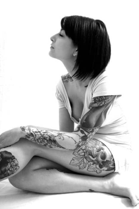 De ahí que me enamoren las chicas con tatuajes, con tatuajes de verdad, sobre todo los que son enormes y cubren espaldas, brazos, piernas… me pierdo entre sus líneas deleitándome con su belleza y a la vez imaginando que historia se esconderá detrás, poco más hay en este mundo que encuentre más sexy que eso.