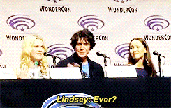 Pero bueno, el momento más ligero del panel corrió a cargo de Eliza Taylor, que dijo que una de sus escenas favoritas fue el momento del beso con Lexa, porque nunca había hecho algo así, a lo que Lindsay Morgan le preguntó ‘¿NUNCA?’ entre las risas del público, e hizo que Eliza añadiera un pequeño plus a su frase: …en pantalla.