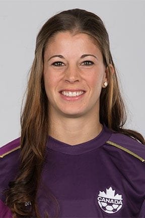 Actualmente juega en el club sueco KIF Örebro y en la selección canadiense, con la que ganó la medalla de bronce en los Juegos del 2012.