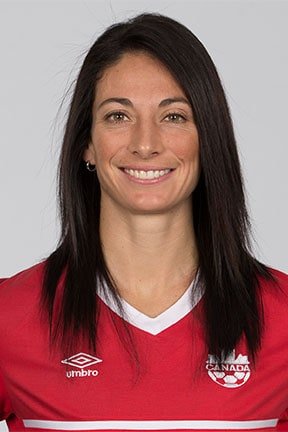 Actualmente juega en el club sueco KIF Örebro y en la selección canadiense, con la que ganó la medalla de bronce en los Juegos del 2012.