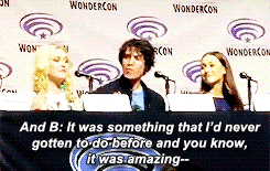 Pero bueno, el momento más ligero del panel corrió a cargo de Eliza Taylor, que dijo que una de sus escenas favoritas fue el momento del beso con Lexa, porque nunca había hecho algo así, a lo que Lindsay Morgan le preguntó ‘¿NUNCA?’ entre las risas del público, e hizo que Eliza añadiera un pequeño plus a su frase: …en pantalla.