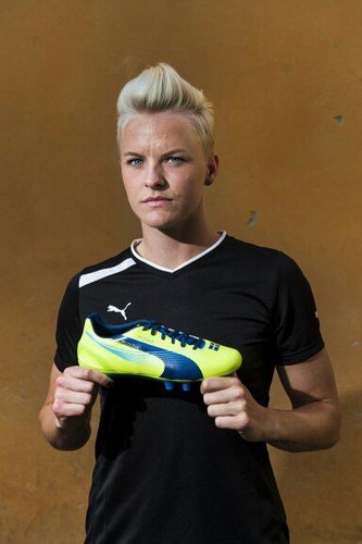 Otra nórdica, y otra cuyo padre fue leyenda del fútbol. Salió del armario publicamente en 2011.