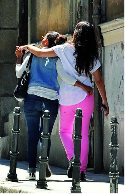 El caso es que parecen haberse hecho inseparables. Como buenas BFFs, pues dan paseos veraniegos por la capi. Y como son amigas y se quieren, pues se abrazan y arrechuchan sin miramientos.